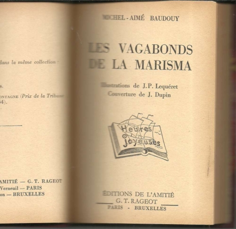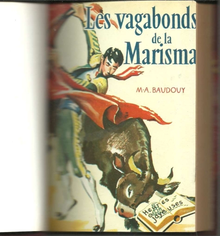 LES VAGABONDS DE LA MARISMA. *** Michel-Aimé Baudouy *** Illustrations de J. P. Lequéret *** Couverture de J. Dupin *** Paris – Bruxelles: Éditions de l’Amitié – G. T. Rageot, 1955. Colecção: Heures Joyeuses. (17,5 x 12 cm.) com 221 + [3] pp. Com várias ilustrações a p/b.. Encadernado, conservando a capa da frente original. Bom exemplar. Encadernação com lombada e cantos em pele vermelha, tendo as pastas recobertas também por papel de fantasia; lombada com 4 nervos e tendo gravados a ouro o nome do Autor, o título e um touro. Encadernação com pequenas marcas de manuseamento e um ligeiro desgaste nos cantos exteriores e em alguns pontos das charneiras, mas, globalmente, ainda em bom estado e limpa. Capa original bem conservada e limpa, embora pareça ter sido um pouco aparada para uniformizá-la com o tamanho das páginas. Páginas em bom estado e limpas, embora apresentem um tom amarelecido, próprio do papel. *** Primeira edição deste romance destinado ao público infanto-juvenil e cuja acção parece estar relacionada com o universo tauromáquico. O Autor, francês e falecido em 1997, destacou-se justamente nos campos da literatura infantil e juvenil, tendo arrebatado vários prémios importantes nesse género. Dedicou-se também à literatura policial, assinando os seus trabalhos nesse domínio com o pseudónimo François Vernières. Livro invulgar. *** Portes: envio gratuito em correio normal (tarifa especial para livros) * envio em correio registado: 1,70