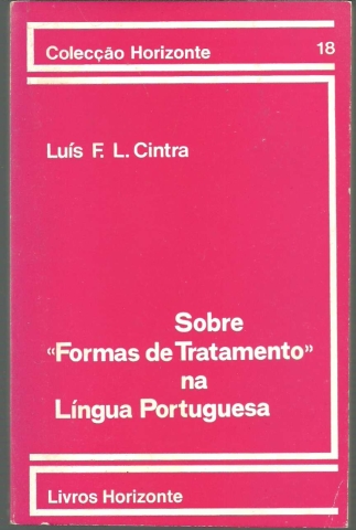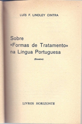 SOBRE «FORMAS DE TRATAMENTO» NA LÍNGUA PORTUGUESA. (Ensaios). *** Luís F. Lindley Cintra *** Lisboa: Livros Horizonte, 1972. Colecção Horizonte – 18. (18 x 11,5 cm.) com 138 + [6] pp. Capa flexível. Exemplar razoável. Capa com marcas de manuseamento, algumas manchas ligeiras, vincos discretos, pequenas perdas de cor em alguns pontos e apresentando um leve desgaste nas margens e na lombada, que se encontra também parcialmente descolorida. Apesar de tudo, globalmente, está ainda em bom estado e limpa. Páginas bem conservadas e limpas, embora apresentando um tom amarelecido, próprio do papel e alguns pontinhos de acidez, que atingem sobretudo os cortes. *** Primeira edição deste interessante livro que estuda o complexo «sistema das formas de tratamento em português – isto é, das formas que, em Portugal, um interlocutor usa para se dirigir a outro interlocutor, a primeira pessoa do discurso (para empregar termos gramaticais), à segunda pessoa do mesmo discurso.» (Índice completo na imagem 4). *** Portes: envio gratuito em correio normal (tarifa especial para livros) * envio em correio registado: 1,70