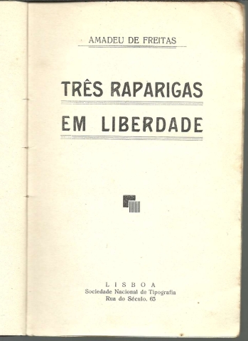 TRÊS RAPARIGAS EM LIBERDADE. *** Amadeu de Freitas *** Lisboa: Sociedade Nacional de Tipografia, [1937]. (18,5 x 12 cm.) com 230 + [2] pp. Capa flexível. Exemplar razoável. Capa com marcas de manuseamento, manchas, algumas esfoladelas, um pouco empoeirada e algo gasta nas margens e na lombada, que apresenta também vincos de abertura e a falta de alguns pedacinhos de papel nas extremidades. Tem uma assinatura de posse na capa da frente. Globalmente, apesar de envelhecida e não muito limpa, está ainda apresentável. Páginas, de um modo geral, em bom estado e limpas, embora apresentem um tom ligeiramente amarelecido e algumas pequenas manchas, não muito frequentes. *** Primeira edição deste romance escrito em forma de diário, uma das primeiras obras publicadas pelo jornalista e escritor lisboeta Amadeu de Freitas, filho do também escritor e jornalista amarantino Amadeu Augusto de Freitas. Pouco comum. *** Portes: envio gratuito em correio normal (tarifa especial para livros) * envio em correio registado: 1,70