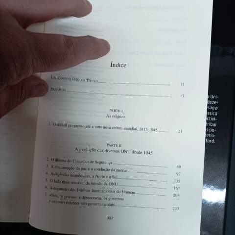 A obra detalha a história da fundação das Nações Unidas e a forma como, ao longo dos tempos, tem reagido perante as adversidades e os desafios que se lhe apresentaram, em especial as tensões no Conselho de Segurança e a conciliação, difícil, dos interesses por vezes antagónicos dos seus membros permanentes.
