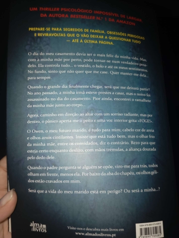O dia do meu casamento devia ser o mais feliz da minha vida. Mas, com a minha mãe por perto, pode tornar-se num verdadeiro pesadelo. Ela controla tudo — o vestido, o bolo e até os meus sentimentos. No fundo, sinto que não quer que me case. Quer manter-me dela… para sempre.