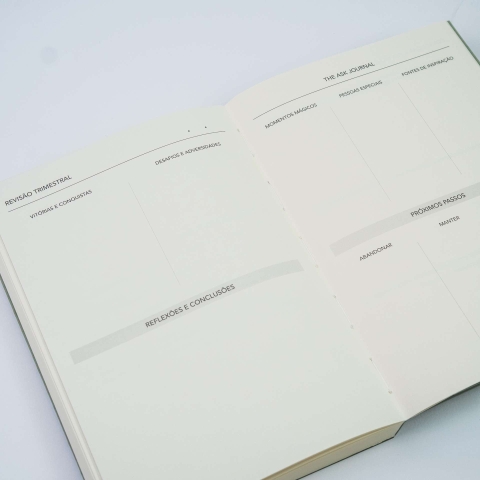 Com ênfase especial nos detalhes, nossa revista é impressa em papel marfim liso de 100 g/m² com uma capa de papel de algodão premium de 360 g/m² e versátil de toque suave – ambos de origem sustentável e certificados pelo FSC (Forest Stewardship Council). Nossa encadernação permite uma abertura plana, criando uma experiência de escrita perfeita.