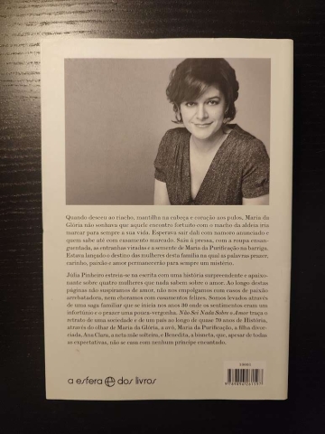 Quando desceu ao riacho, mantilha na cabeça e coração aos pulos, Maria da Glória não sonhava que aquele encontro fortuito com o macho da aldeia iria marcar para sempre a sua vida. Esperava sair dali com namoro anunciado e quem sabe até com casamento marcado. Saiu à pressa, com a roupa ensanguentada, as tripas viradas e a semente de Maria da Purificação na barriga. Estava lançado o destino das mulheres desta família na qual as palavras prazer, carinho, paixão e amor permanecerão para sempre um mistério. A apresentadora de televisão Júlia Pinheiro estreia-se na escrita com uma história surpreendente e apaixonante sobre quatro mulheres que nada sabem sobre o amor. Ao longo destas páginas não suspiramos de amor, não nos empolgamos com casos de paixão arrebatadora, nem choramos com casamentos felizes. Somos levados numa saga familiar que se inicia nos anos 30 onde os sentimentos eram um infortúnio e o prazer uma pouca-vergonha. Não Sei Nada sobre o Amor traça o retrato de uma sociedade e de um país ao longo de quase 70 anos de história, através do olhar de Maria Glória, a avó, Maria da Purificação, a filha divorciada, Ana Clara, a neta mãe solteira, e Benedita, a bisneta, que, apesar de todas as expectativas, não se casa com nenhum príncipe encantado.