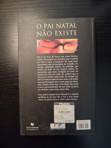 Este é um livro de humor que conta histórias como a do homem que descobriu que o sentido da vida é para a esquerda; do super-herói descontente com as condições de trabalho; da criança adiantada mental; do indivíduo que insistia em falar no seu próprio velório; do samaritano que nunca conseguiu ser bom; do homem que ficou de noite; do carteiro que só entregava notícias assim-assim; do homem que tem um talento especial para nada e de muitas outras personagens que o autor julga ter conhecido. Explica ainda que o Pai Natal não existe e tem a particularidade de usar todas as letras do alfabeto, coisa nunca antes vista. Caso queira adquiri-lo ou oferecê-lo a alguém, certifique-se de que não o faz a uma terça-feira, às quinze horas e vinte e sete minutos.