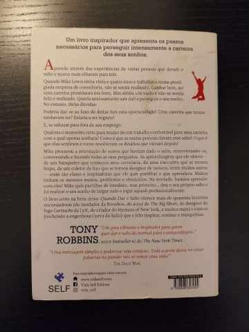 Aprenda através das experiências de várias pessoas que deram o salto e nunca mais olharam para trás. Quando Mike Lewis tinha vinte e quatro anos e trabalhava numa prestigiada empresa de consultoria, não se sentia realizado. Ganhar bem, ter uma carreira promissora era bom. Mas sentia um vazio e não se sentia feliz e realizado. Queria ansiosamente sair dali e perseguir o seu sonho. No entanto, tinha dúvidas: Poderia dar-se ao luxo de deitar fora esta oportunidade? Uma carreira que tantos sonhavam ter? Estaria a ser ingrato? E, se saltasse para fora do seu emprego: Qual era o momento certo para mudar de um trabalho confortável para uma carreira com a qual apenas sonhara? Como é que as outras pessoas davam esse salto? O que é que elas sentiram e como resolveram os desafios que vieram depois? Mike procurou a orientação de outros que haviam dado o salto, entrevistando-os, conversando e fazendo todas as suas perguntas. As aprendizagens que ele obteve — de um banqueiro que começou uma cervejaria, de uma executiva que se tornou bispo, de um coletor de lixo que se tornou designer de móveis, entre muitos outros — eram tão claras e inspiradoras que ele quis partilhar o que aprendera. Muitos tinham os mesmos medos, problemas e obstáculos. Na verdade, bastava aprender com eles! Mike quis partilhar de imediato, mas primeiro… deu o seu próprio salto e foi realizar o seu sonho de largar tudo e jogar squash profissionalmente. O livro certo na hora certa: Quando Dar o Salto oferece mais de quarenta histórias encorajadoras (do fundador da Bonobos, do autor de The Big Short, do designer do logo Carstache da Lyft, do criador do Humans of New York, e muitos mais) e tópicos (incluindo a engenhosa Curva do Salto) que o irão inspirar, ensinar e tranquilizar.