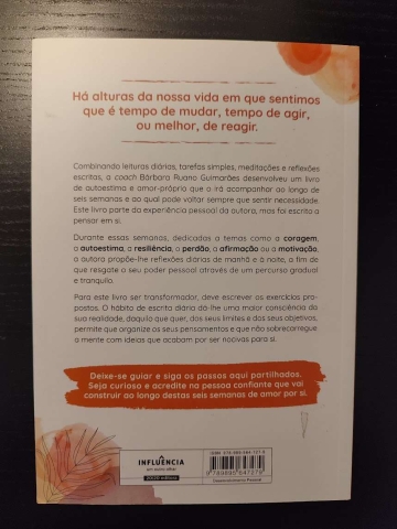 Combinando leituras diárias, tarefas simples, meditações e reflexões escritas, a coach Bárbara Ruano Guimarães desenvolveu um livro de autoestima e amor-próprio que o irá acompanhar ao longo de seis semanas e ao qual pode voltar sempre que sentir necessidade. Este livro parte da experiência pessoal da autora, mas foi escrito a pensar em si.