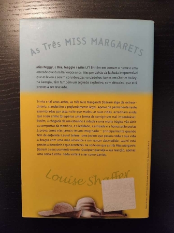 Miss Peggy, a Dra. Maggie e Miss Li’l Bit têm em comum o nome e uma amizade que dura há longos anos. Mas por detrás da fachada irrepreensível que as levou a serem consideradas verdadeiros ícones em Charles Valley, na Georgia, têm também um segredo explosivo, com décadas, que está prestes a ser revelado. Trinta e tal anos antes, as três Miss Margarets fizeram algo de extraordinário, clandestino e profundamente ilegal. Apesar de permanentemente assombradas por essa noite que mudou as suas vidas, acreditam ainda que o seu crime foi apenas uma forma de corrigir um mal imperdoável. Porém, a chegada de um estranho à cidade e uma morte trágica vão abrir as comportas da memória, e a lealdade, a amizade e a honra serão postas à prova como elas jamais teriam imaginado – principalmente quando têm de enfrentar Laurel Selene, uma jovem que passou toda a sua vida a braços com uma mãe alcoólica e um rancor desmedido. Laurel está prestes a descobrir o que aconteceu na noite em que as três Miss Margarets fizeram o seu juramento secreto. Qualquer que seja a sua reacção, apenas uma coisa é certa: nada voltará a ser como dantes.