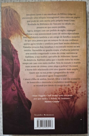 Passados poucos dias, Jonathan é encontrado morto no seu estúdio. Na mesma altura, a sua mulher, Kathleen, que sofre de Alzheimer, também é encontrada, escondida no guarda-roupa, a balbuciar palavras sem sentido e segurando a arma do crime. Apesar da demência, Kathleen sabia que o marido tinha há muito tempo um caso com outra mulher. Terá ela matado o marido num acesso de ciúmes, como alega a polícia? Ou estará a morte dele relacionada com uma pergunta mais ampla: Quem tem em, sua posse o pergaminho de valor incalculável que agora desapareceu?