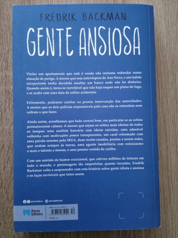 Com um sentido de humor excecional, que cativou milhões de leitores em todo o mundo, e personagens tão imperfeitas quanto tocantes, Fredrik Backman volta a surpreender com esta história sobre gente idiota e ansiosa e os laços invisíveis que (n)os unem.