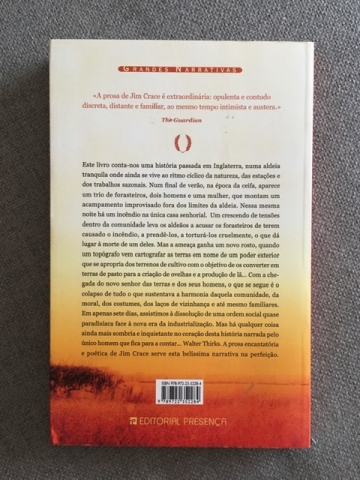 Encontramo-nos em Inglaterra, numa aldeia tranquila onde ainda se vive ao ritmo das estações e dos trabalhos agrícolas sazonais. Num final de verão, no entanto, o novo senhor das terras e os seus homens chegam e confiscam os terrenos comunitários para iniciar a criação de ovelhas e a produção de lã. A desconfiança, o medo, a revolta e a violência instalam-se e, em apenas sete dias, assistimos à dissolução de uma ordem social quase paradisíaca face ao nascimento da era industrial. Mas qualquer coisa ainda mais inquietante se insinua no coração desta história narrada pelo único homem que fica para a contar... Walter Thirks. A prosa encantatória e poética de Jim Crace serve esta belíssima narrativa na perfeição.