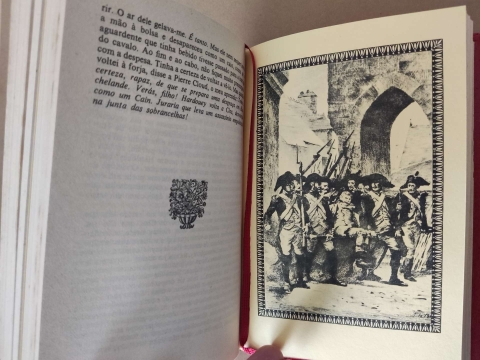 Capa dura, em pele, ilustrado, 375 páginas.