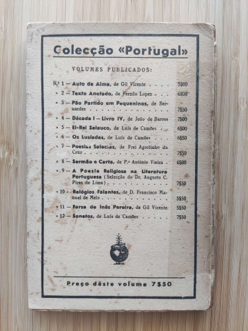 Exemplar com manchas de oxidação na capa e restauro amador da lombada.