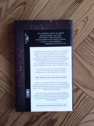 O livro tem algumas manchas amarelas e uma assinatura, mas, no geral, está em bom estado.