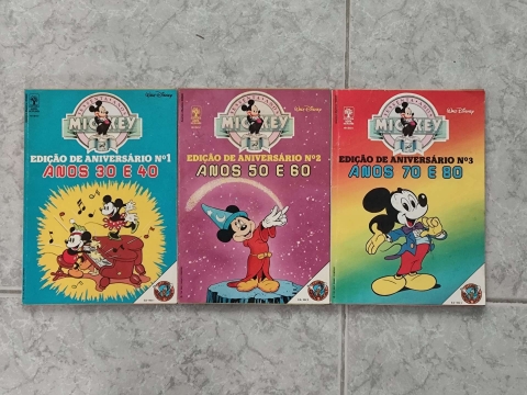 "Edição Aniversário Mickey": 3 revistas nº 1, 2 e 3 a comemorar os 60 anos de Mickey, da editora Morumbi.