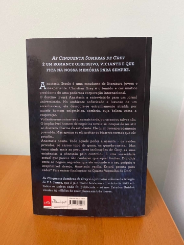 Anastasia Steele é uma estudante de literatura jovem e inexperiente. Christian Grey é o temido e carismático presidente de uma poderosa corporação internacional. O destino levará Anastasia a entrevistá-lo. No ambiente sofisticado e luxuoso de um arranha-céus, ela descobre-se estranhamente atraída por aquele homem enigmático, cuja beleza corta a respiração. Voltarão a encontrar-se dias mais tarde, por acaso ou talvez não. O implacável homem de negócios revela-se incapaz de resistir ao discreto charme da estudante. Ele quer desesperadamente possuí-la. Mas apenas se ela aceitar os bizarros termos que ele propõe... Anastasia hesita. Todo aquele poder a assusta - os aviões privados, os carros topo de gama, os guarda-costas... Mas teme ainda mais as peculiares inclinações de Grey, as suas exigências, a obsessão pelo controlo… E uma voracidade sexual que parece não conhecer quaisquer limites. Dividida entre os negros segredos que ele esconde e o seu próprio e irreprimível desejo, Anastasia vacila. Estará pronta para ceder? Para entrar finalmente no Quarto Vermelho da Dor? As Cinquenta Sombras de Grey é o primeiro volume da trilogia de E. L. James que é já o maior fenómeno literário do ano em todos os países onde foi publicado.