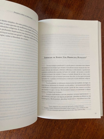 Uma reflexão sobre a liberdade, as condições que a viabilizam e as ameaças que a desafiam. Uma exploração intelectual de temas que vão do conflito entre pluralismo e relativismo, sociedade civil e governo ilimitado, liberdade de ensino e Estado educador, liberdade religiosa e autoritarismo anti-religioso. Mais uma peça na persistente intervenção intelectual do autor com vista a distinguir a moderação, inerente à causa da liberdade, dos vários radicalismos que a ameaçam.