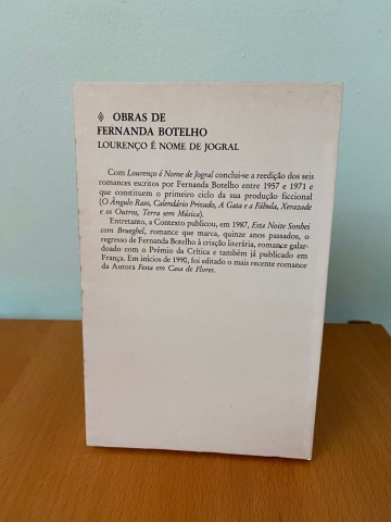 Dado à estampa em 1971 e distinguido, nesse mesmo ano, com o Prémio Nacional de Novelística, Lourenço é nome de jogral encerra aquele que tem sido considerado como o primeiro ciclo de publicação da obra de Fernanda Botelho, iniciado, em 1957, com Ângulo raso. a ele se sucederá um interregno de mais de uma década a que, em 1987, o romance Esta noite sonhei com Brueghel irá, enfim, pôr termo. Se aqui relembro, de passagem, esta cronologia, é porque ela me parece sintoma de que é nome de jogral é já ponto de chegada de um conglobante que Mário Sacramento argutamente como um "romance-em-romances".