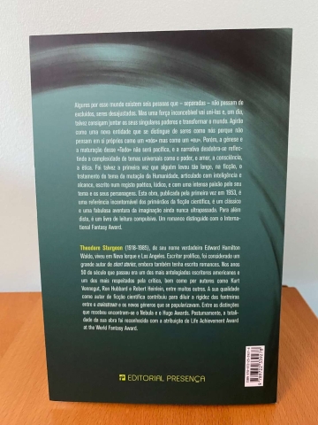Publicado pela primeira vez em 1953, Mais Que Humano foi considerado «uma das melhores obras de ficção do ano» pelo The New York Times e o seu autor foi consagrado como um mestre no género. Theodore Sturgeon dá vida a um grupo que sozinho não significa nada mas junto constitui o futuro da humanidade: os mutantes, que assumem uma função psicológica e física, com poderes vários e de consequências inimagináveis. Para lá do que é comum, encontramos assim novas formas do ser humano materializadas em diversas personagens. Lone ouve os pensamentos das pessoas e faz com que os seus cérebros rebentem apenas com o olhar. Janie tem o poder da telecinesia, conseguindo mover as coisas sem lhes tocar, as gémeas teletransportam-se e o Bebé, ainda no berço, inventou um aparelho anti-gravidade. Gerry tem tudo para governar o mundo, mas falta-lhe consciência. Em separado, são aberrações com talento. Juntos, compõem um organismo que pode representar o passo seguinte da evolução e o capítulo final da história da raça humana. Um livro que irá pôr à prova os seus limites e o fará pensar em futuras eras.