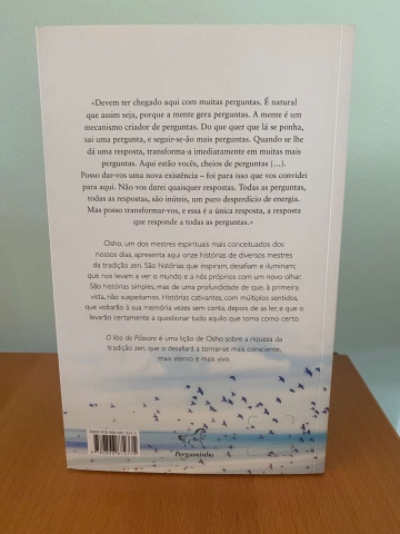 «Devem ter chegado aqui com muitas perguntas. É natural que assim seja, porque a mente gera perguntas. A mente é um mecanismo criador de perguntas. Do que quer que lá se ponha, sai uma pergunta, e seguir-se-ão mais perguntas. Quando se lhe dá uma resposta, transforma-a imediatamente em muitas mais perguntas. Aqui estão vocês, cheios de perguntas (…). Posso dar-vos uma nova existência - foi para isso que vos convidei para aqui. Não vos darei quaisquer respostas. Todas as perguntas, todas as respostas, são inúteis, um puro desperdício de energia. Mas posso transformar-vos, e essa é a única resposta, a resposta que responde a todas as perguntas.» Osho, um dos mestres espirituais mais conceituados dos nossos dias, apresenta aqui onze histórias de diversos mestres da tradição zen. São histórias que inspiram, desafiam e iluminam; que nos levam a ver o mundo e a nós mesmo com um novo olhar. São histórias simples, mas de uma profundidade de que, à primeira vista, não suspeitamos. Histórias cativantes, com múltiplos sentidos, que voltarão à sua memória vezes sem conta, depois de as ler, e que o levarão certamente a questionar tudo aquilo que toma como certo. O Voo do Pássaro é uma lição de Osho sobre a riqueza da tradição zen, que o desafiará a tornar-se mais consciente, mais atento e mais vivo.
