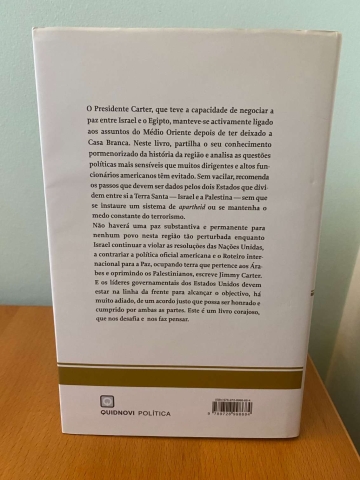 Conhecem-se os parâmetros gerais a que deve obedecer um acordo de longo prazo entre os dois Estados, escreve o presidente. Não haverá uma paz substantiva e permanente para nenhum povo nesta região tão perturbada, enquanto Israel continuar a violar as resoluções das Nações Unidas, a contrariar a política oficial americana e o Roteiro internacional para a Paz, ocupando terra que pertence aos Árabes e oprimindo os Palestinianos. As fronteiras oficiais de Israel, anteriores a 1967, devem ser respeitadas, com excepção de modificações que possam ser negociadas e mutuamente aceites. E os líderes governamentais dos Estados Unidos devem estar na linha da frente para alcançar o objectivo, há muito adiado, de um acordo justo que possa ser honrado e cumprido por ambas as partes, tal como sempre tem acontecido com todos os governos dos EUA desde a fundação de Israel. Este é um livro corajoso, que nos desafia e que nos faz pensar.