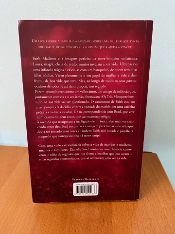 Um livro sobre a família e a amizade, sobre uma mulher que tenta libertar-se do seu passado e o homem que a ajuda a vencer. Faith Madison é a imagem perfeita da nova-iorquina sofisticada. Loura, magra, cheia de estilo, há muito quem inveje a sua vida. Ultrapassou uma infância trágica e casou-se com um banqueiro, de quem tem duas filhas adultas. Viveu ao máximo o seu papel de mulher e mãe e desfrutou da boa vida que teve. Mas, ao longo de todos os seus passos, ocultou de todos um segredo, e até de si própria. Mas quando reencontra um velho amor, um amigo de infância que, juntamente com ela e o seu irmão, formavam «Os Três Mosqueteiros», tudo na sua vida vai ser questionado. O casamento de Faith está em crise, porque ela decidiu, contra a vontade do marido, ter uma carreira própria e voltar a estudar. E é na correspondência com Brad, que vive num casamento sem amor, que vai encontrar refúgio. E à medida que recuperam a sua ligação de infância, algo mais vai crescendo entre eles. Brad encontrará a coragem para tomar a decisão que devia ter tomado anos antes e também Faith será ousada e partilhará o segredo que traz consigo há tantos anos. Com uma visão extraordinária sobre a vida de maridos e mulheres, amantes e familiares, Danielle Steel conta-nos uma história comovente e sábia de segredos que nos ferem e escolham que nos saram - e das segundas oportunidades, que só uma vez na vida acontecem.