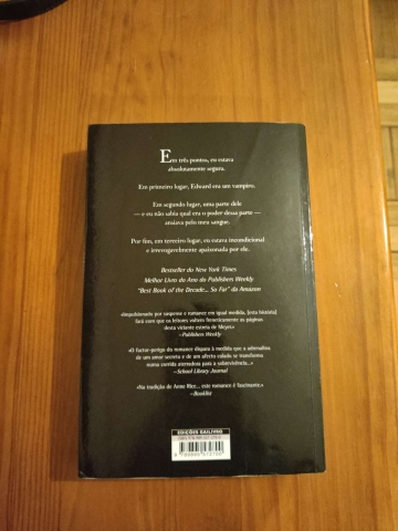 "A respeito de três aspectos, eu estava absolutamente segura. Em primeiro lugar, Edward era um vampiro. Em segundo lugar, uma parte dele - e eu não sabia qual era o poder dessa parte - ansiava pelo meu sangue. Por fim, em terceiro lugar, eu estava incondicional e irrevogavelmente apaixonada por ele."
