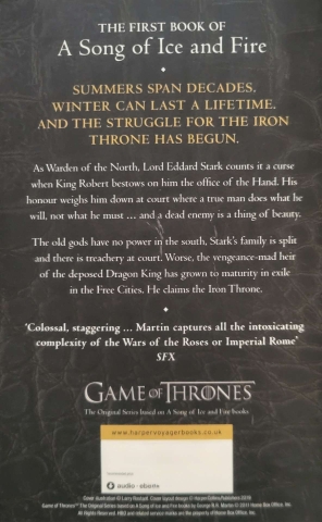 As Warden of the north, Lord Eddard Stark counts it a curse when King Robert bestows on him the office of the Hand. His honour weighs him down at court where a true man does what he will, not what he must … and a dead enemy is a thing of beauty.
