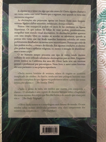Já alguma vez o leitor viu algo que não estava lá? Ouviu alguém chamar o seu nome numa casa vazia? Sentiu que o seguiam, mas quando se virou não encontrou ninguém? As alucinações não pertencem apenas aos loucos. Estão mais frequentemente ligadas a falhas sensoriais, intoxicação, doença ou lesões. Pessoas com enxaquecas podem ver arcos de luz cintilantes ou figuras liliputianas. Pessoas com falhas de visão podem, paradoxalmente, mergulhar num mundo visual alucinatório. As alucinações podem aparecer com uma simples febre ou mesmo ao acordar ou adormecer, quando as pessoas têm visões que vão desde manchas luminosas coloridas até rostos perfeitamente pormenorizados, ou mesmo seres aterrorizantes. Pessoas que estão de luto podem receber «visitas» do falecido. Em algumas condições, as alucinações podem levar a epifanias religiosas, ou mesmo à sensação de abandonarmos o nosso corpo. O ser humano sempre procurou este tipo de visões, tendo durante milhares de anos utilizado substâncias alucinogénias para as obter. Enquanto jovem médico na Califórnia nos anos 60, Oliver Sacks teve um interesse pessoal e profissional por psicotrópicos. Neste livro, o autor reúne histórias dos seus pacientes e a sua própria experiência