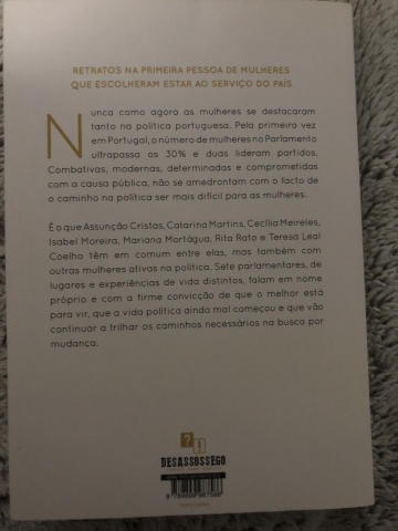 Retratos na primeira pessoa de mulheres que escolheram estar ao serviço do país. Nunca como agora as mulheres se destacaram tanto na política portuguesa. Pela primeira vez em Portugal, o número de mulheres no Parlamento ultrapassa os 30% e duas lideram partidos. Combativas, modernas, determinadas e comprometidas com a causa pública, não se amedrontam com o facto de o caminho na política ser mais difícil para as mulheres. É o que Assunção Cristas, Catarina Martins, Cecília Meireles, Isabel Moreira, Mariana Mortágua, Rita Rato e Teresa Leal Coelho têm em comum entre elas, mas também com outras mulheres ativas na política.