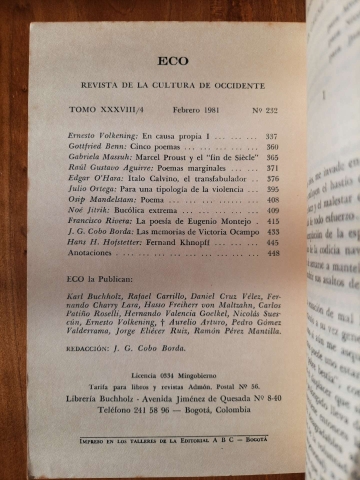 ECO, Fevereiro, 1981, nº 232, Buchholz, Bogotá