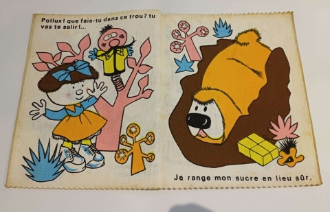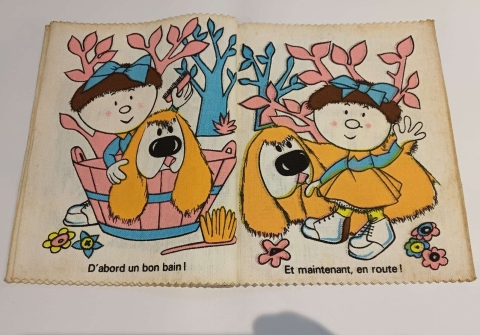 Livro infantil de pano "Le manège enchanté", Serge Danot, edição Pélican Blanc, O.R.T.F. 1965. Em língua francesa.