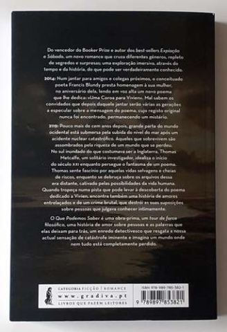 O que Podemos Saber é uma obra-prima, um tour de force filosófico, uma história de amor sobre pessoas e as palavras que elas deixam para trás, um enredo detectivesco que resgata a nossa actual sensação de catástrofe iminente e imagina um mundo onde nem tudo está completamente perdido.