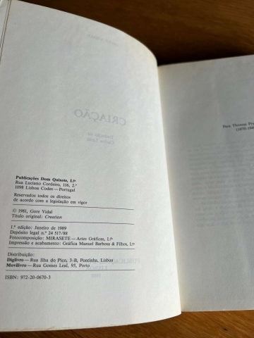 A Criação é um romance épico de ficção histórica de Gore Vidal publicado em 1981.