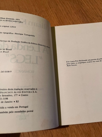 Kennedy publicou Legs (sobre Jack (“Legs”) Diamond, um gangster morto em Albany em 1931) em 1975 e Billy Phelan's Greatest Game (sobre um vigarista fictício de Albany) em 1978.