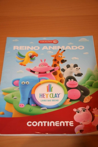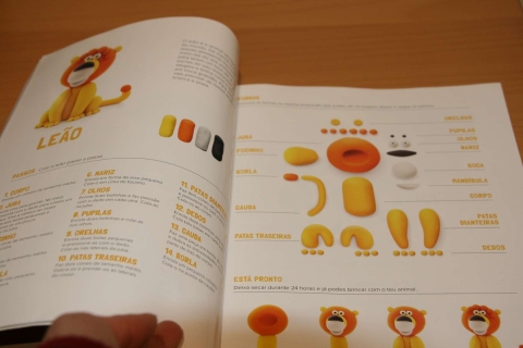 Livro de instruções que ensina a modelar figuras de animais com a massa de modelar Hey Clay.