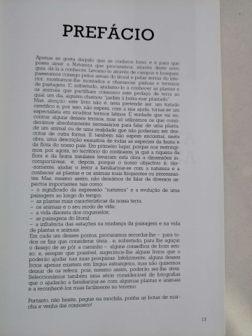 Do índice: 1. A natureza em mudança; 2. As paisagens; 3. As árvores e os arbustos; 4. As pequenas plantas e flores silvestres; 5. Os invertebrados; 6. As aves; 7. Os mamíferos; 8. Répteis e anfíbios; 9. Animais de água doce; 10. Os sinais da presença de animais; 11. Os cogumelos; 12. O litoral; 13. A influência das estações.