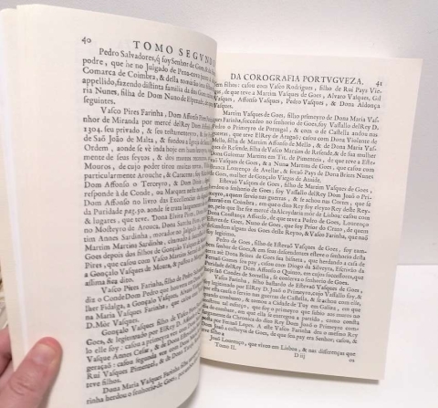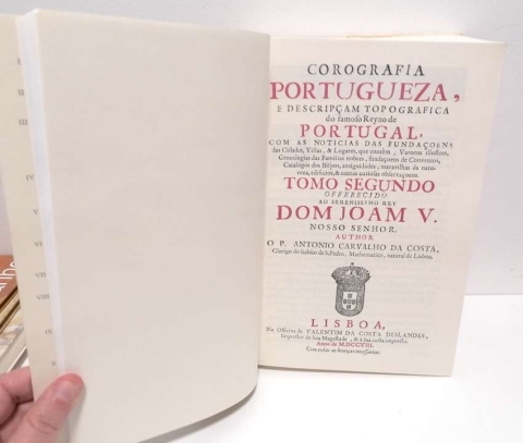 Corografia portugueza e descripçam topografica do famoso Reyno de Portugal, com as noticias das fundações das cidades, villas, & lugares, que contém; varões illustres, genealogias das familias nobres, fundações de conventos, catalogos dos bispos, antiguidades, maravilhas de natureza, edificios, & outras curiosas observaçoens. De Antonio Carvalho da Costa. Tomo 2.