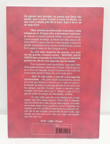 Doutora, sinto muita pena e uma grande tristeza por si. A senhora é demasiado materialista, mas se um dia passar por qualquer aflição ou situação de perigo, seja qual for, peça a Jesus Cristo que a cure com o Seu sangue e peça-Lhe perdão. Ele nunca a abandonará, porque pagou o preço do Seu sangue por si.