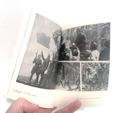 Fol longo, porém, o caminho que finalizou em Berlim. Durante 1418 dias e noites, não cessaram os combates encarniçados em toda a extensão de uma frente de 3.000 a 6.200 quilómetros e na retaguarda do território temporariamente ocupado pelo agressor. O povo soviético pagou muito caro a vitória. 9 a 10 vidas por minuto, 587 a 588 por hora e mais de 14.000 por dia. No total, morreram mais de 20 mi-lhões de soviéticos, ou seja, 2/5 de todas as vítimas da Segunda Guerra Mundial. Foi também muito grande o prejuízo material causado à URSS: 485 triliões, ao preço dos anos 40.