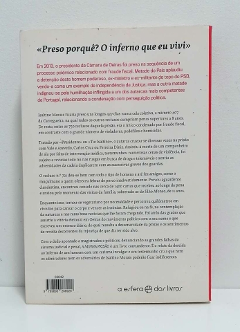 Isaltino Morais ficaria preso uns longos 429 dias. Habitou a cela colectiva 407 da Carregueira, numa ala onde todos os presos eram mais novos e cumpriam penas maiores do que ele. De resto, entre os 750 homens que constituiam a população prisional, o autarca era o único condenado por fraude fiscal, em contraste com o grande número de violadores, pedófilos e homicidas. Tratado por «Presidente» ou «Tio Isaltino», cruzou-se diversas vezes nos corredores e no pátio da prisão com Vale e Azevedo, Carlos Cruz ou Ferreira Diniz. Assistiu à morte de um companheiro de cela por falta de intervenção médica, testemunhou numerosas cenas de violência, foi sujeito a revistas todo nu nas rusgas em busca de droga e telemóveis e sentiu as adversidades da cadeia duplicarem com as sucessivas greves dos guardas. O recluso n.º 721 deu-se bem com todo o tipo de homens e até fez amigos, como o muçulmano a quem ofereceu secretos de porco inadvertidamente. Provou aguardente clandestina, encontrou consolo nas centenas de cartas que recebeu e ansiou pelo momento das visitas da família, sobretudo as do filho Afonso, de 11 anos. Enquanto isso, tornou-se vegetariano por necessidade, percorreu quilómetros em círculos para cansar o corpo e vencer as insónias. Refugiou-se na fé, na contemplação da natureza e nas raras boas notícias que lhe foram chegando. Foi atrás das grades que assistiu à vitória eleitorial do movimento político com o seu nome e que escreveu um extenso diário, do qual ressalta a desumanidade da prisão e os sentimentos de revolta decorrentes da injustiça de que diz ter sido alvo. Com o dedo apontado a magistrados e políticos, denunciando as grandes falhas do sistema judicial e penal, A Minha Prisão é um livro contundente. É o relato da descida ao inferno de um homem com um carisma invulgar e um testemunho crú a que nem os admiradores nem os adversários de Isaltino Morais poderão ficar indiferentes.