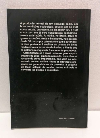 Classificando-se o Brasil entre os grandes produtores de coco, em todo o mundo, esta obra se reveste de suma importância, pois dará ao interessado em seu cultivo todas as diretrizes referentes às generalidades da palmeira, à escolha de local, seleção de mudas, tratos culturais e combate às pragas e moléstias.