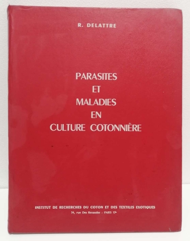 O livro "Parasitas e doenças no cultivo do algodão" por R. Delattre, publicado em 1973 pelo Cotton and Exotic Textiles Research Institute (IRCT), é um manual fitossanitário que trata de pragas e doenças que afetam o algodão. O livro de 146 páginas lista as diferentes pragas, seus sintomas e métodos de controle, com foco nos problemas encontrados no contexto do cultivo do algodão.