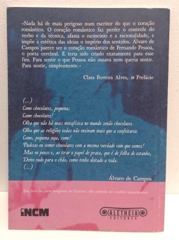 «Nada há de mais perigoso num escritor do que o coração romântico. O coração romântico faz perder o controle do verbo e da técnica, afasta o raciocínio e a racionalidade, e impõe à estética das ideias o império dos sentidos. Álvaro de Campos parece ser o coração romântico de Fernando Pessoa, o poeta cerebral. E teria sido criado exatamente para esse fim. Para sentir o que Pessoa não ousava nem queria sentir. Para sentir, simplesmente.»