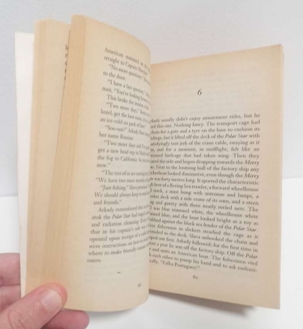 Fishing in the Bering Sea, a trawler's nets bring up flatfish, pollock, crabs and a blonde girl in a white blouse and blue jeans. Her name is Zina, and she is a crewmember of the Soviet factory ship Polar Star which processes the American trawlers' catches.