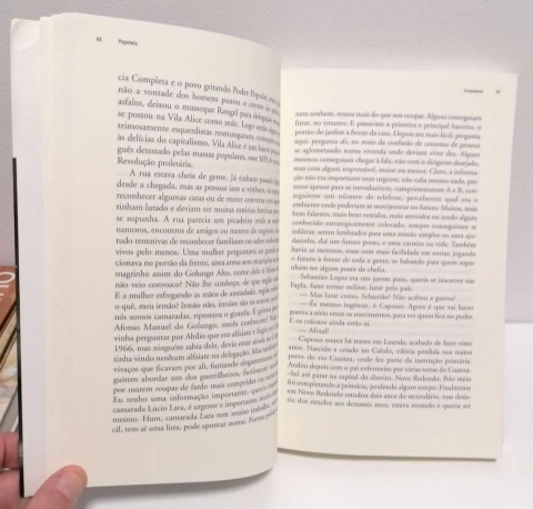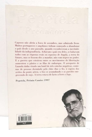 "Caposso não abriu a boca de assombro, mas admirado ficou. Muitos Portugueses e Angolanos tinham começado a abandonar o país desde o ano passado, quando reconheceram a inevitabilidade da independência. Achavam que o país era deles, se babavam todos com as riquezas reais ou supostas de Angola, a terra do futuro, mas se fossem eles a mandar, não com negros no poder. E a guerra que estoirou entre os moviemntos de libertação aumentou o pânico e as filas de embarque. O aeroporto de Luanda tinha virado um hotel de três estrelas negativas, centenas de pessoas dormindo pelo chão dias a fio, à espera dos aviões da ponte aérea, o lixo se acumulando e as paredes enegrecendo de sujo. A terra estava de facto a ferro e fogo."