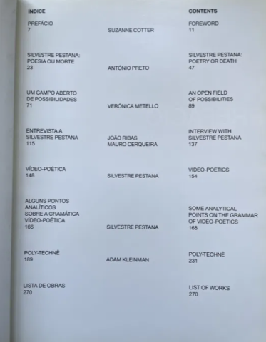 Catálogo bilingue portuguêsi/inglês com imagens de todas as obras da primeira grande exposição dedicada à obra de Silvestre Pestana, com ensaios inéditos de Verónica Metello, Adam Kleinman e António Preto, bem como uma conversa entre João Ribas, curador da mostra, Silvestre Pestana e o artista Mauro Cerqueira.