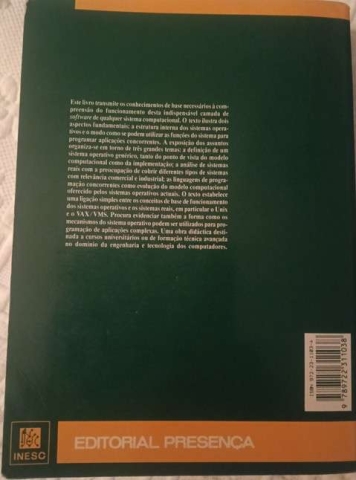 Este livro transmite os conhecimentos de base necessários à com- preensão do funcionamento desta indispensável camada - tivos e o modo como se podem utilizar as funções do sistema para programar aplicações concorrentes. A exposição dos assuntos organiza-se em torno de três grandes temas: a definição de um sistema operativo genérico, tanto do ponto de vista do modelo computacional como da implementação; a análise de sistemas reais com a preocupação de cobrir diferentes tipos de sistemas com relevância comercial e industrial; as linguagens de programação concorrentes como evolução do modelo computacional oferecido pelos sistemas operativos actuais. O texto estabelece uma ligação simples entre os conceitos de base de funcionamento dos sistemas operativos e os sistemas reais, em particular o Unix eo VAX/VMS. Procura evidenciar também a forma como os mecanismos do sistema operativo podem ser utilizados para programação de aplicações complexas. Uma obra didáctica destinada a cursos universitários ou de formação técnica avançada no domínio da engenharia e tecnologia dos computadores. Editorial Presença Páginas: 435 Dimensões: 240x170 mm.