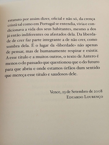 Famoso ensaio de Antero de Quental, apresentado em 1871 nas Conferências Democráticas do Casino em Lisboa. É uma análise crítica sobre as razões do atraso de Portugal e Espanha (Península Ibérica) em comparação com o resto da Europa, situado entre os séculos XVI e XIX.