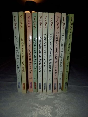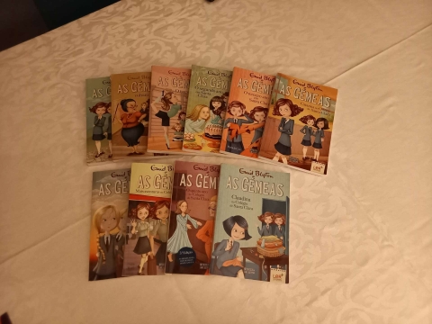 «Por alguns instantes, as duas raparigas foram invadidas por saudades da antiga escola e das velhas amigas. Não conheciam ninguém em Santa Clara; por isso, não podiam saudar as colegas, como sempre tinham feito no primeiro dia de aulas. Também não gostavam do ar de nenhuma das alunas: pareciam muito mais espalhafatosas do que as de Redroofs. Era tudo verdadeiramente horrível!» «Em Santa Clara, o nível de exigência era maior do que na maioria das escolas, e, apesar de as gémeas terem uma boa cabeça, não tardaram a perceber que estavam atrasadas em relação às colegas de turma - coisa que também as irritava bastante. Entraram no colégio convencidas de que iriam impressionar toda a gente - afinal, tinham imensas capacidades -, mas parecia que ali dentro não passavam de zés-ninguém».