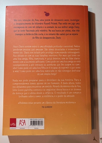 Neste tão aguardado regresso, John Green, autor premiado de A Culpa É Das Estrelas e À Procura de Alaska conta, com dolorosa intensidade, a história de Aza, numa tentativa de partilhar connosco os dramas da doença que o afeta desde a infância. O resultado é um romance brilhante sobre o amor, a resiliência, e o poder da amizade.